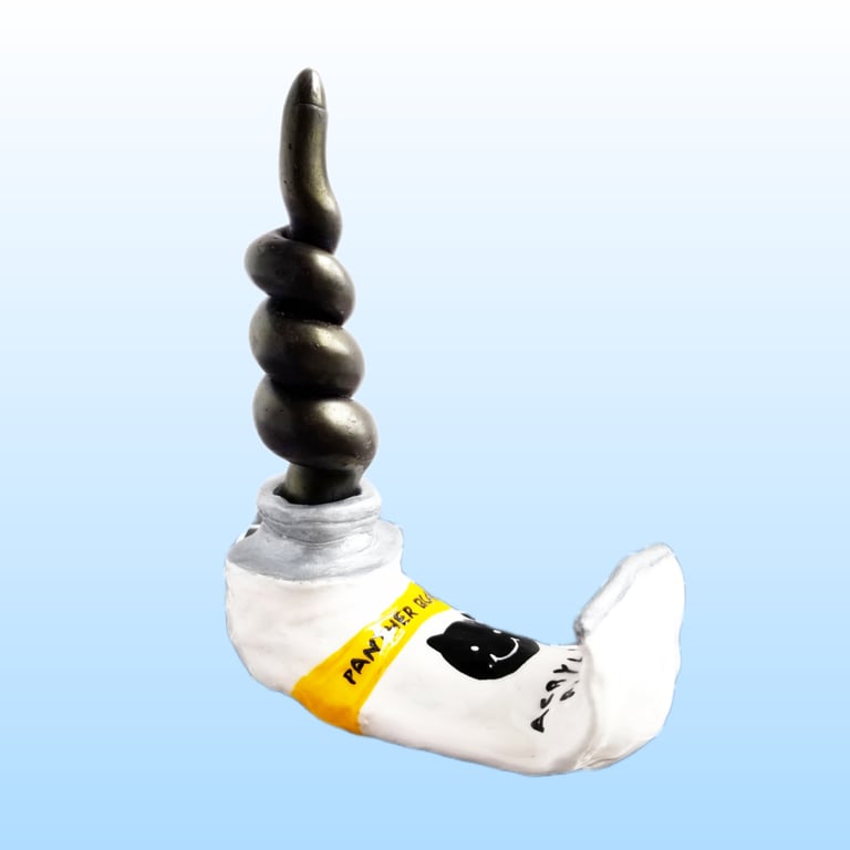 A decorative paint tube sculpture that is also a candle holder.